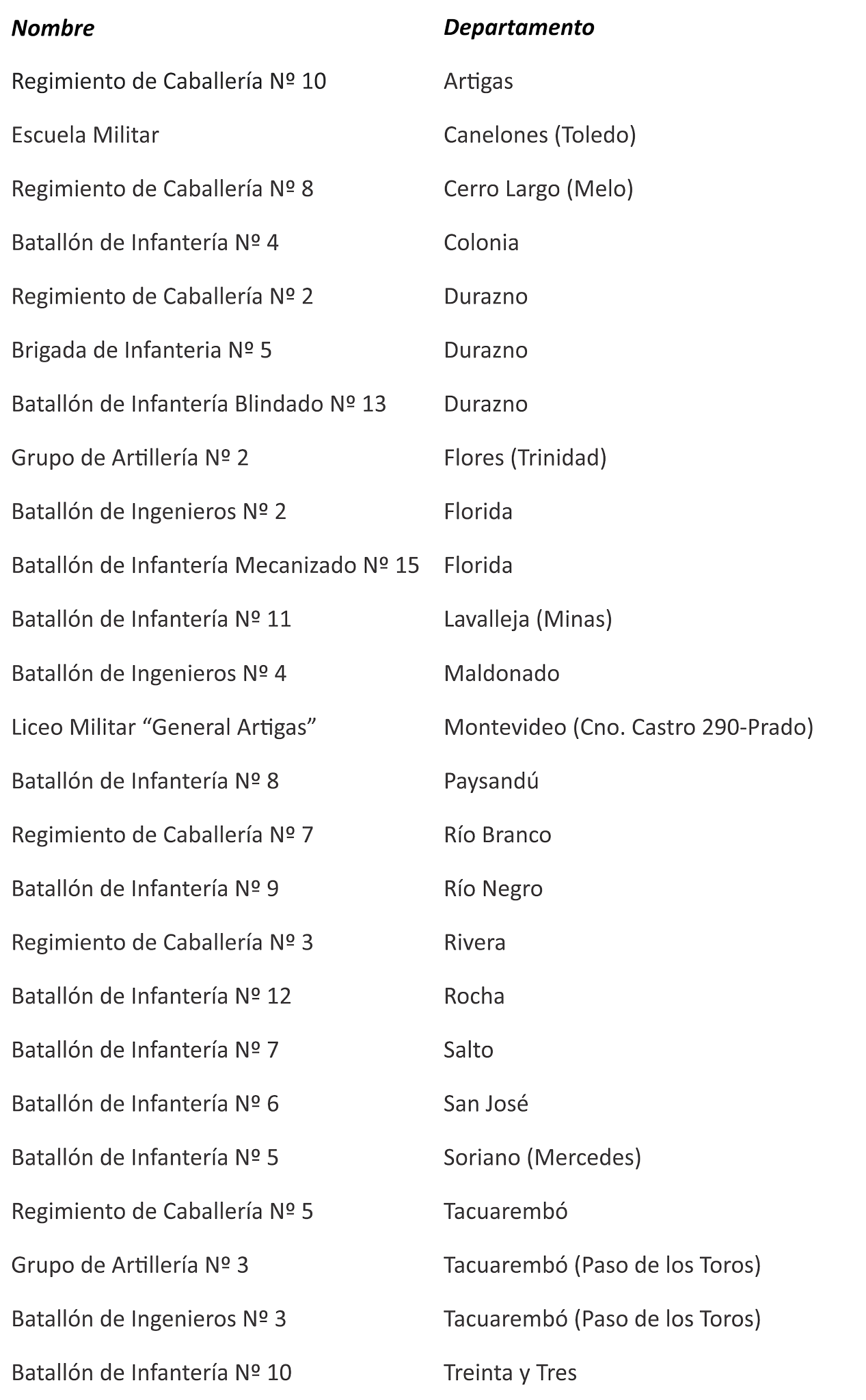 A continuación encontrará el listado completo de los institutos y unidades donde puede acceder a la información necesaria para el ingreso a la Escuela Militar y los formularios para ello. También puede acceder a esta información solicitándola al correo electrónico comsocialem@ejercito.mil.uy con el asunto “bases de ingreso”.