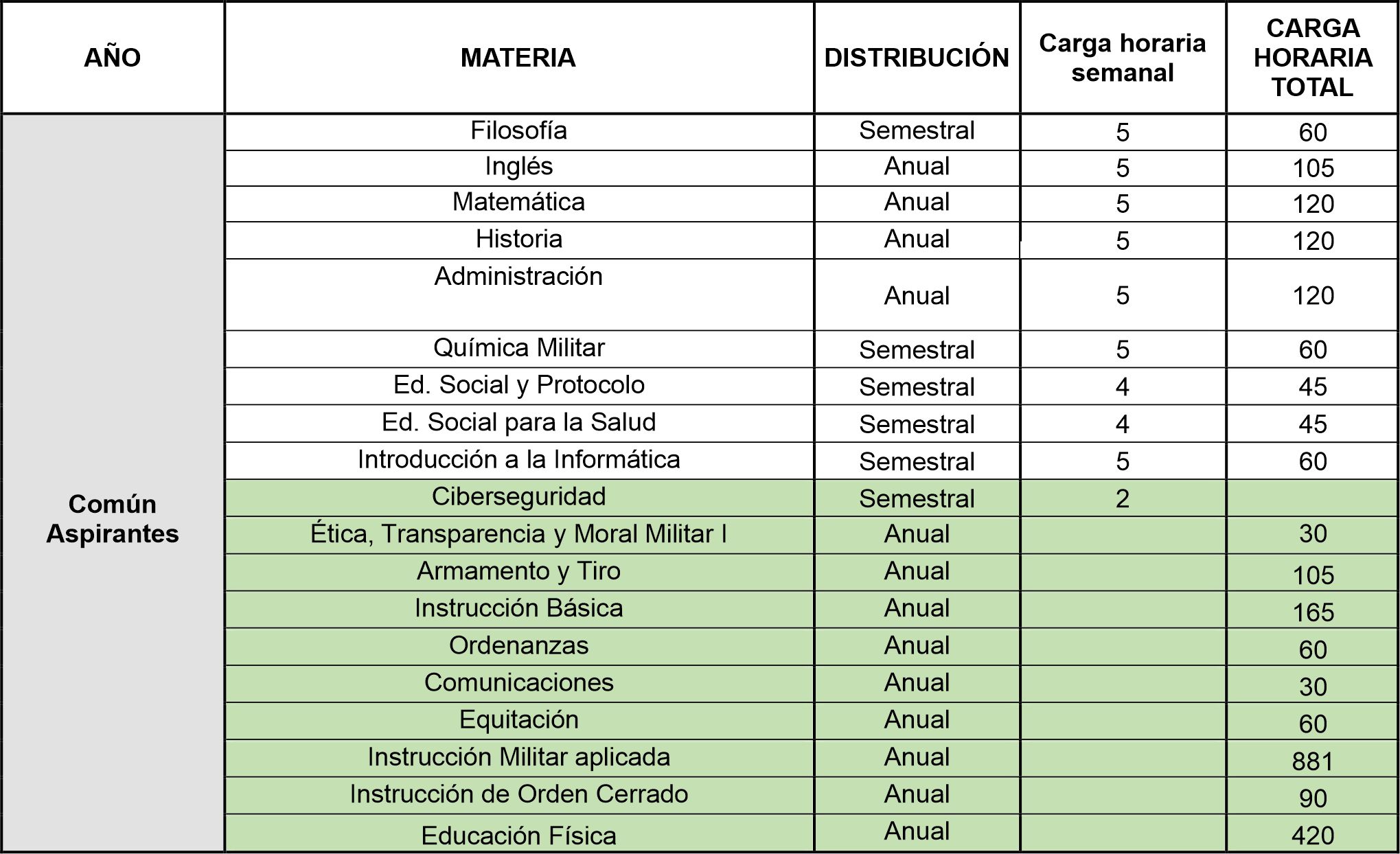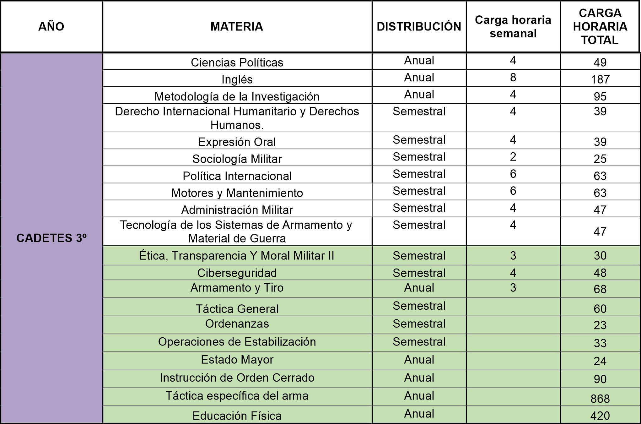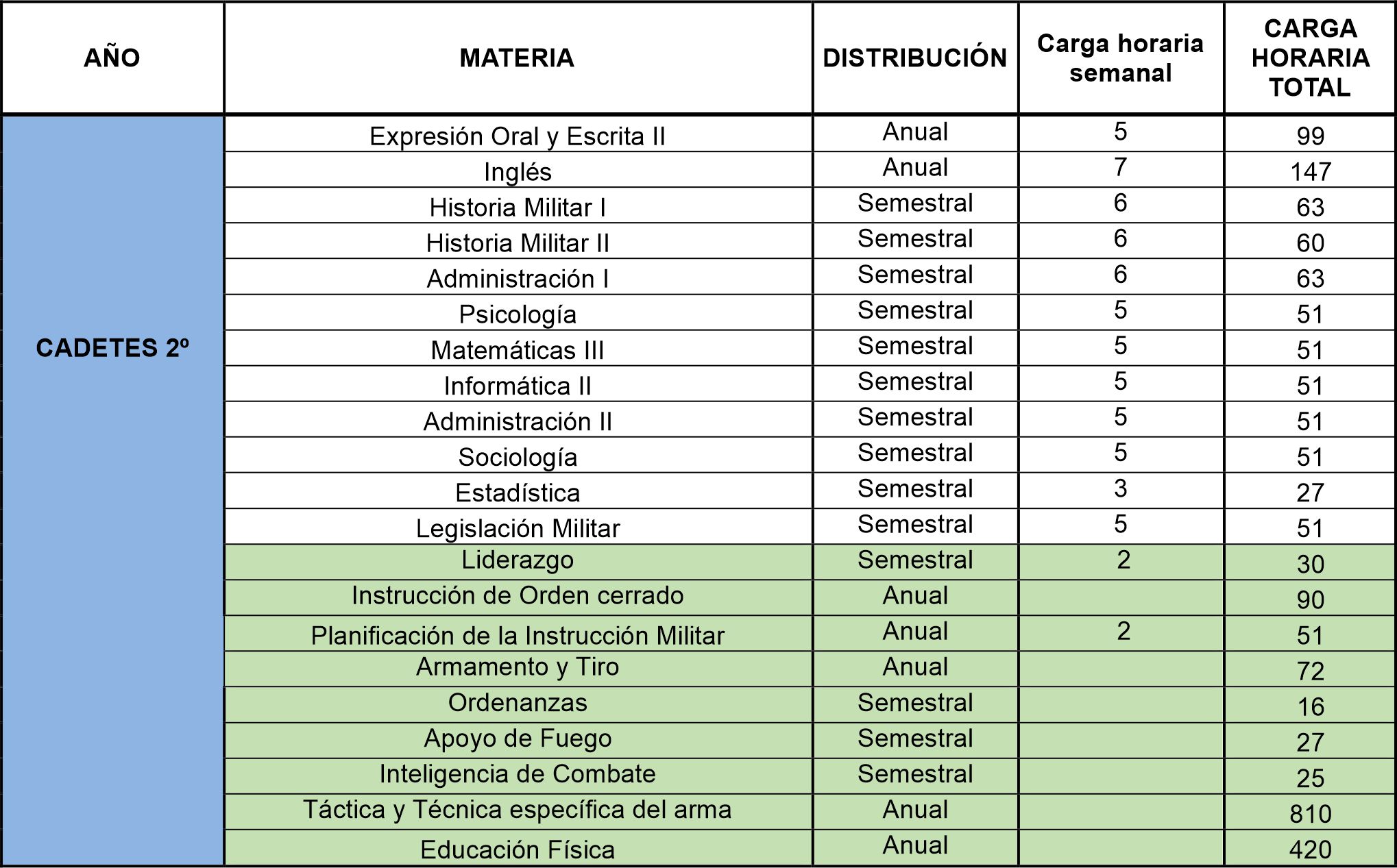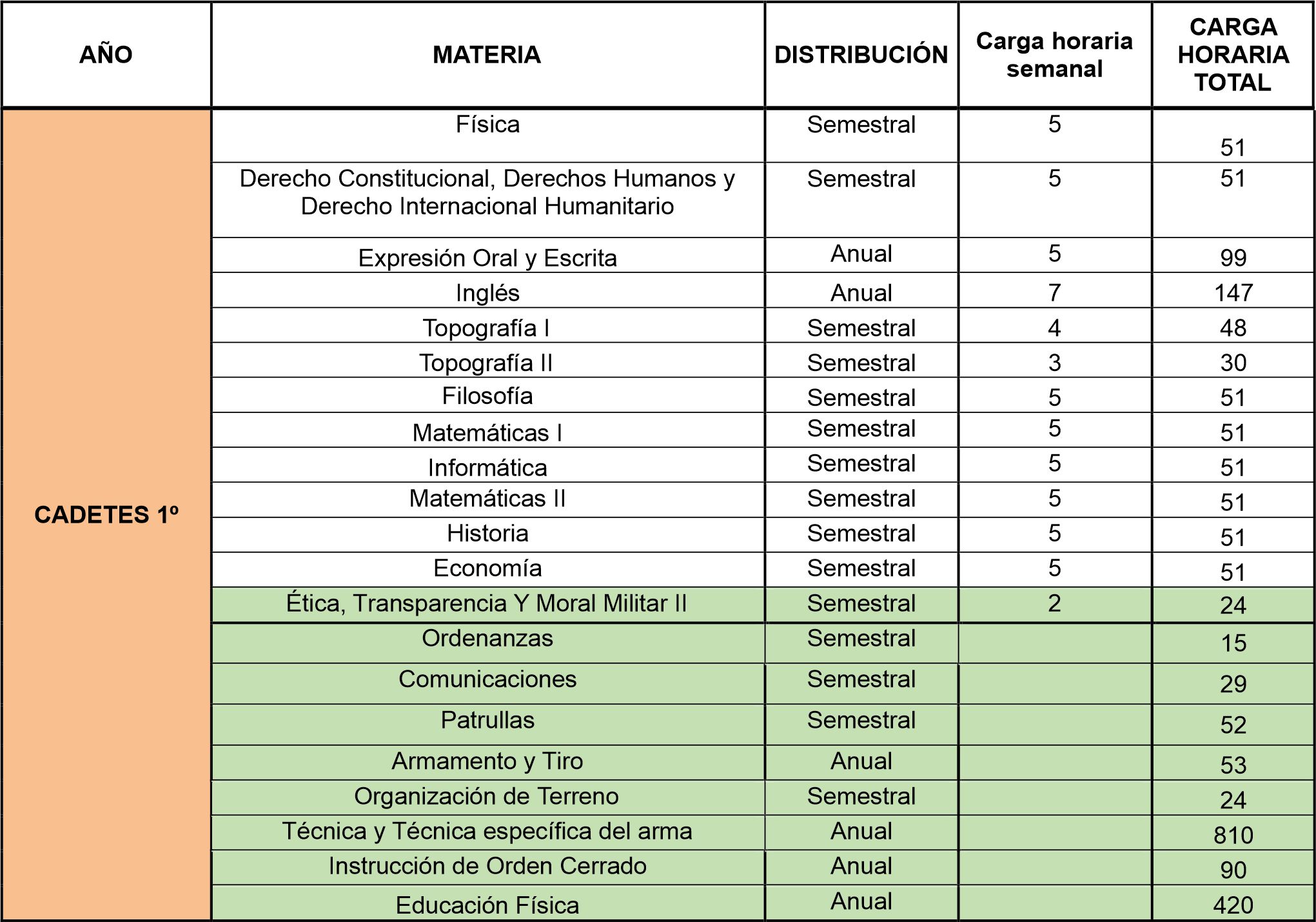 Malla Curricular Cuerpo de Comando